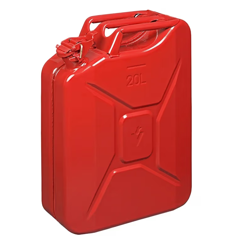 Stabiler Benzinkanister aus starkem Stahlblech, lackiert und TÜV + GS geprüft. Mit UN-Zulassung für den sicheren Transport von Kraftstoffen.