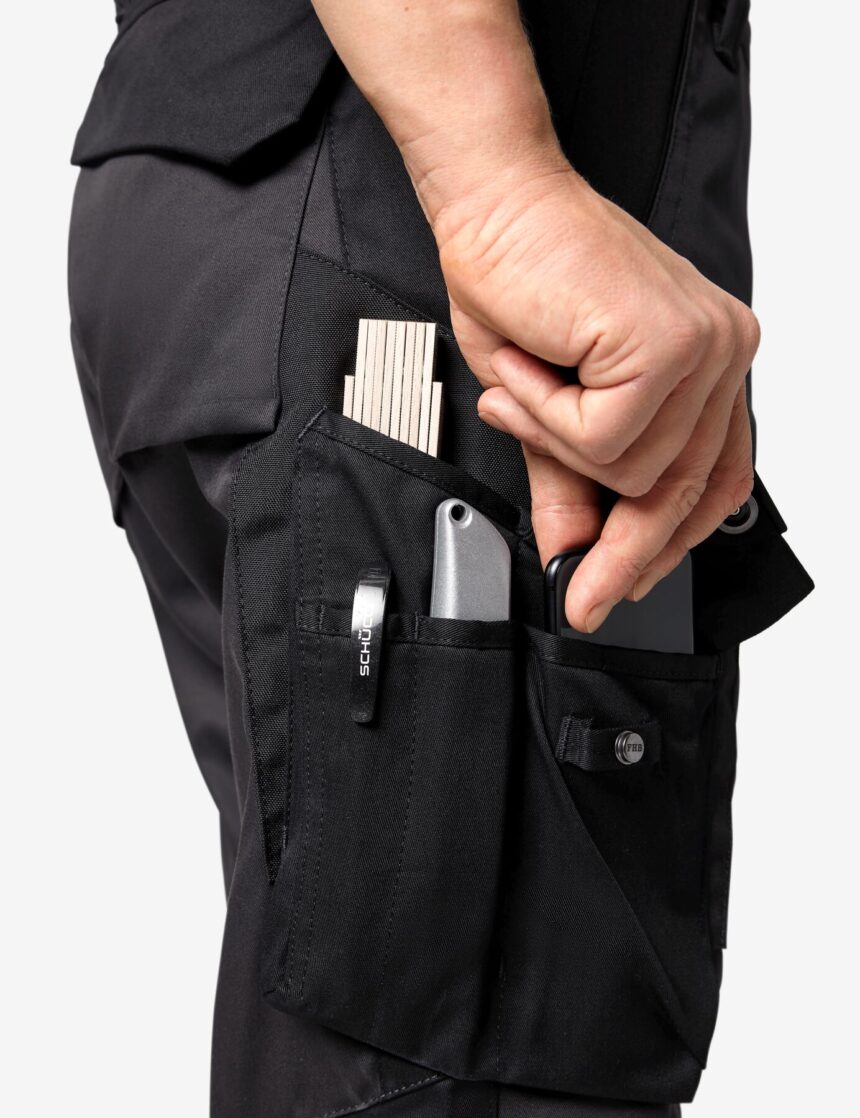 Handy-, Stift- und Zollstocktasche auf beiden Seiten der Hose. So sind die Dinge mit der rechten oder linken Hand immer schnell griffbereit.