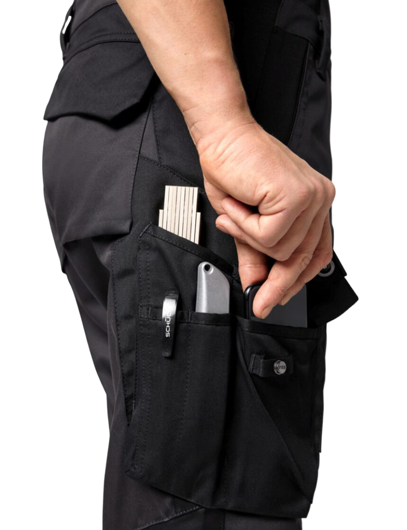 Handy-, Stift- und Zollstocktasche auf beiden Seiten der Hose. So sind die Dinge mit der rechten oder linken Hand immer schnell griffbereit.
