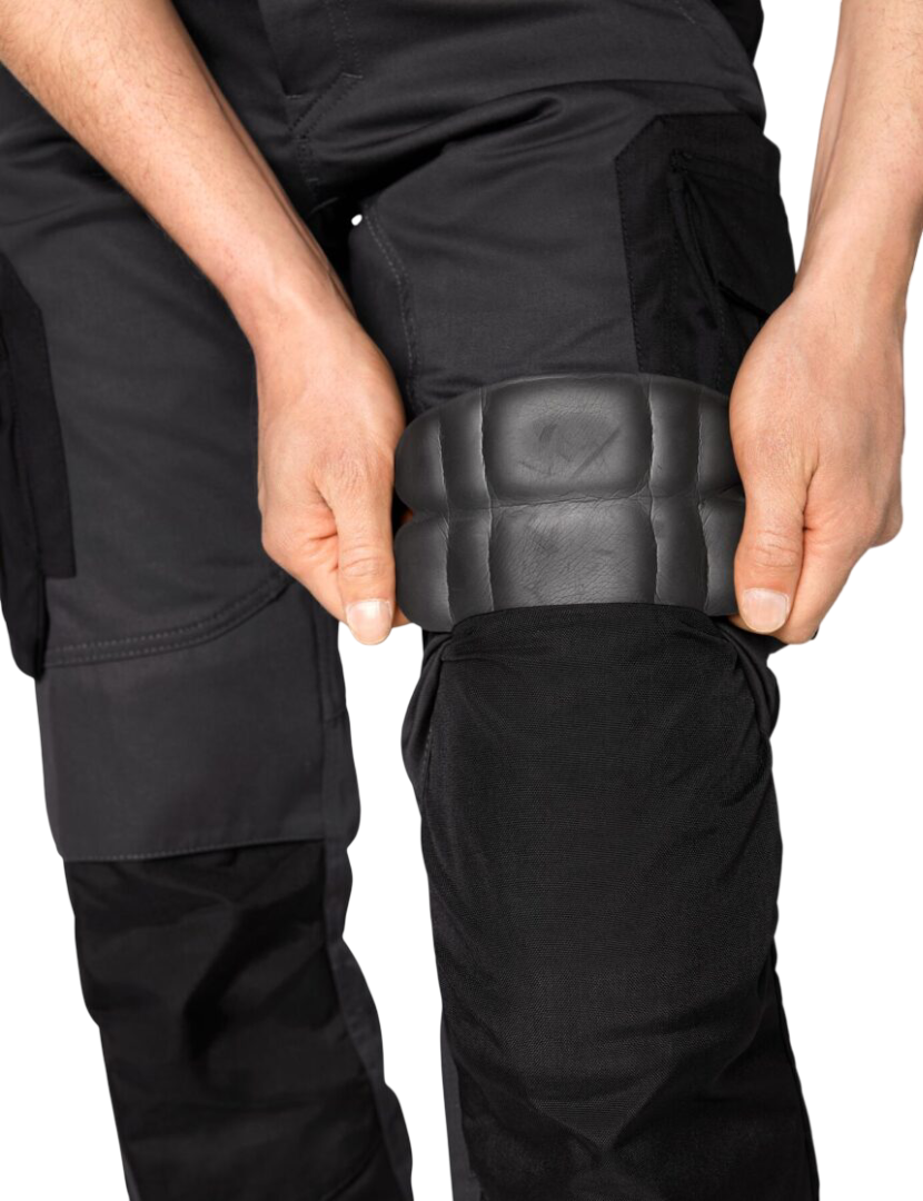 Der Allrounder. Funktionelle Arbeitshose mit Knieschutz und vielen Taschen, die durch ihre Materialzusammensetzung in jede Jahreszeit passt.