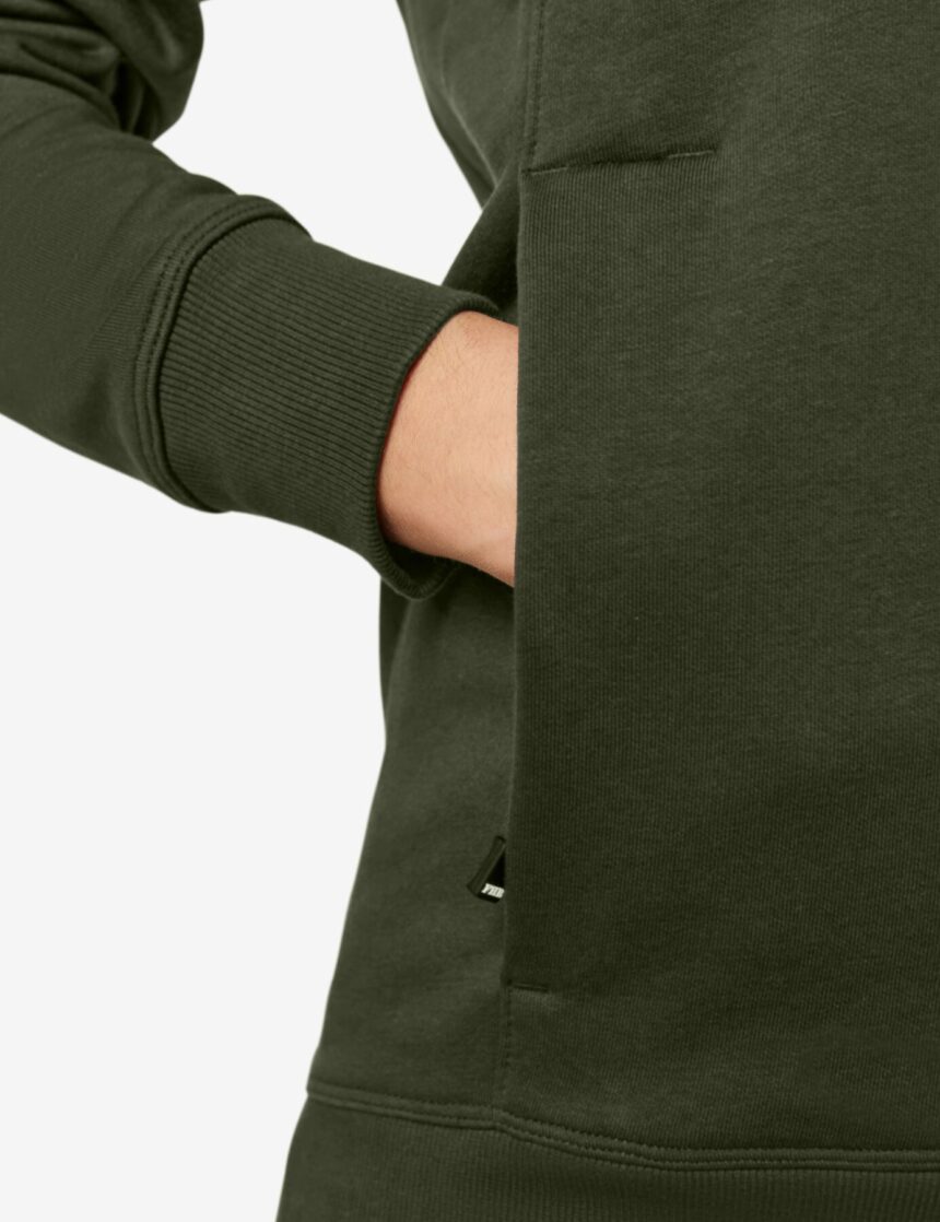 Der Hoodie ist nach unten etwas länger geschnitten als normal. Dadurch wird auch bei gebeugter oder kniender Haltung der Rückbereich sauber abgedeckt, was insbesondere an kälteren Tagen sehr angenehm ist.