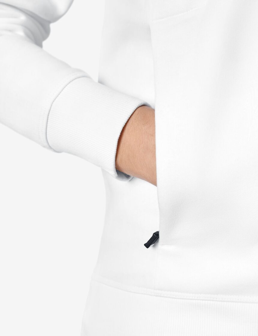 Der Hoodie ist nach unten etwas länger geschnitten als normal. Dadurch wird auch bei gebeugter oder kniender Haltung der Rückbereich sauber abgedeckt, was insbesondere an kälteren Tagen sehr angenehm ist.