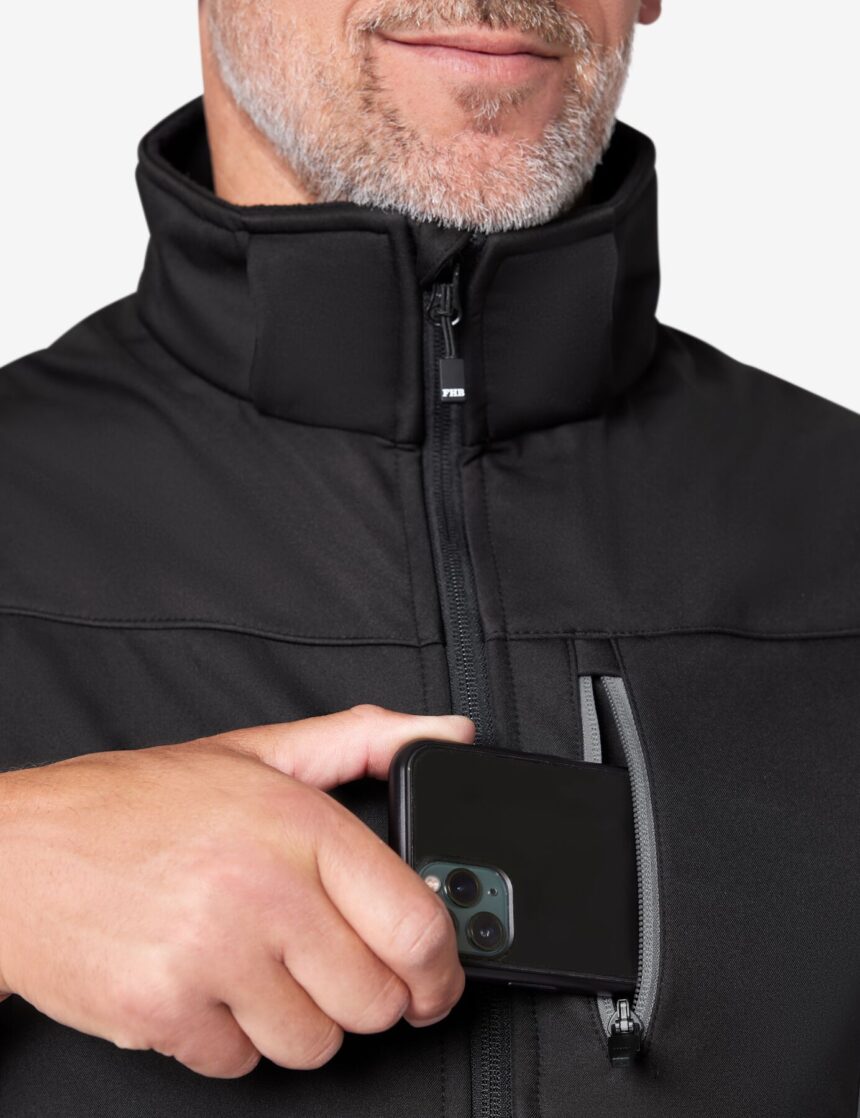 Unsere Allwetterjacke Jannik aus hochwertigem Softshell-Funktionsgewebe ist winddicht, wasserabweisend, atmungsaktiv und wärmeisolierend.