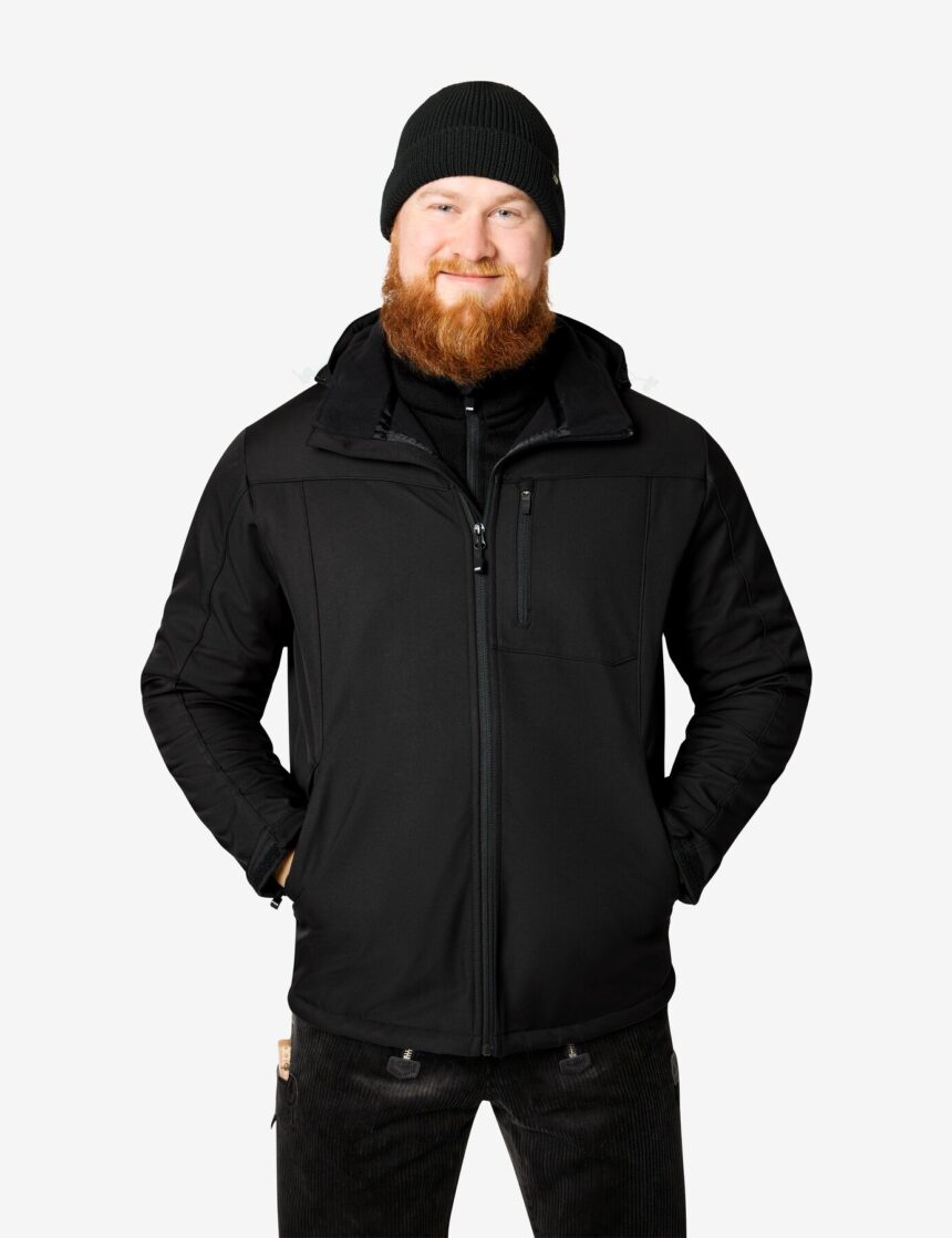 Unsere Allwetterjacke Jannik aus hochwertigem Softshell-Funktionsgewebe ist winddicht, wasserabweisend, atmungsaktiv und wärmeisolierend.