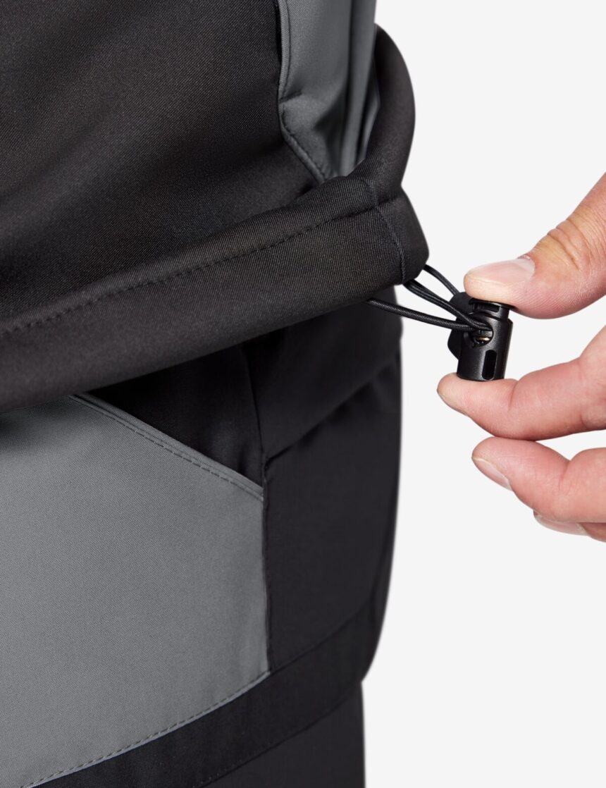 Der Taillenbund unten kann mit einem Kordelzug auf die ideale Weite eigestellt und durch Stopper fixiert werden. Dies sorgt dafür, dass die Jacke gut sitzt und keine unangenehme Kälte eindringen kann.