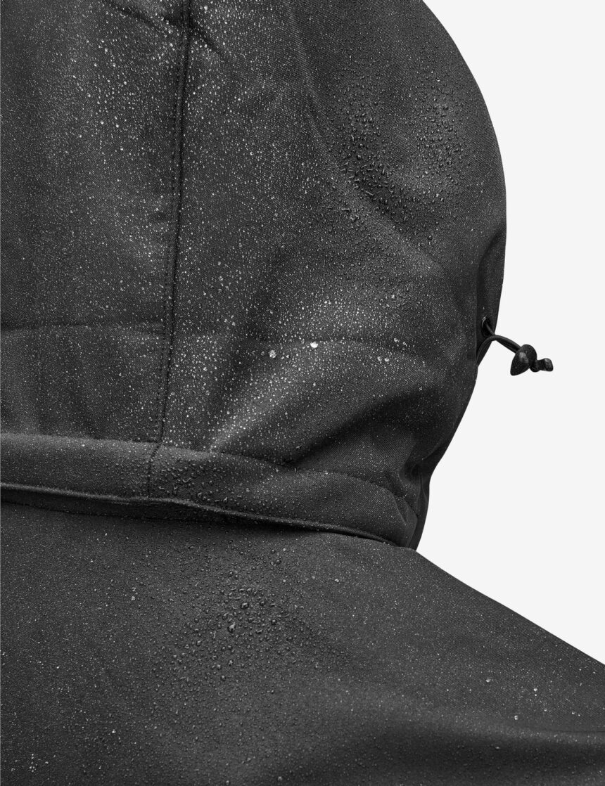 Die Kapuze ist per Kordelzug (mit Kordelstopper) verstellbar und kann an das Gesichtsfeld angepasst werden. Sie schließt zusammen mit dem hoch gearbeiteten Kragen den Kopf bei ungemütlichem Wetter gut ab.