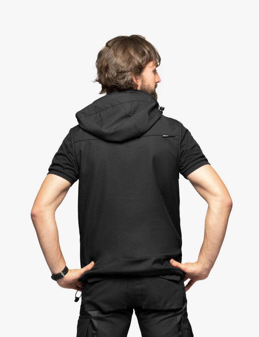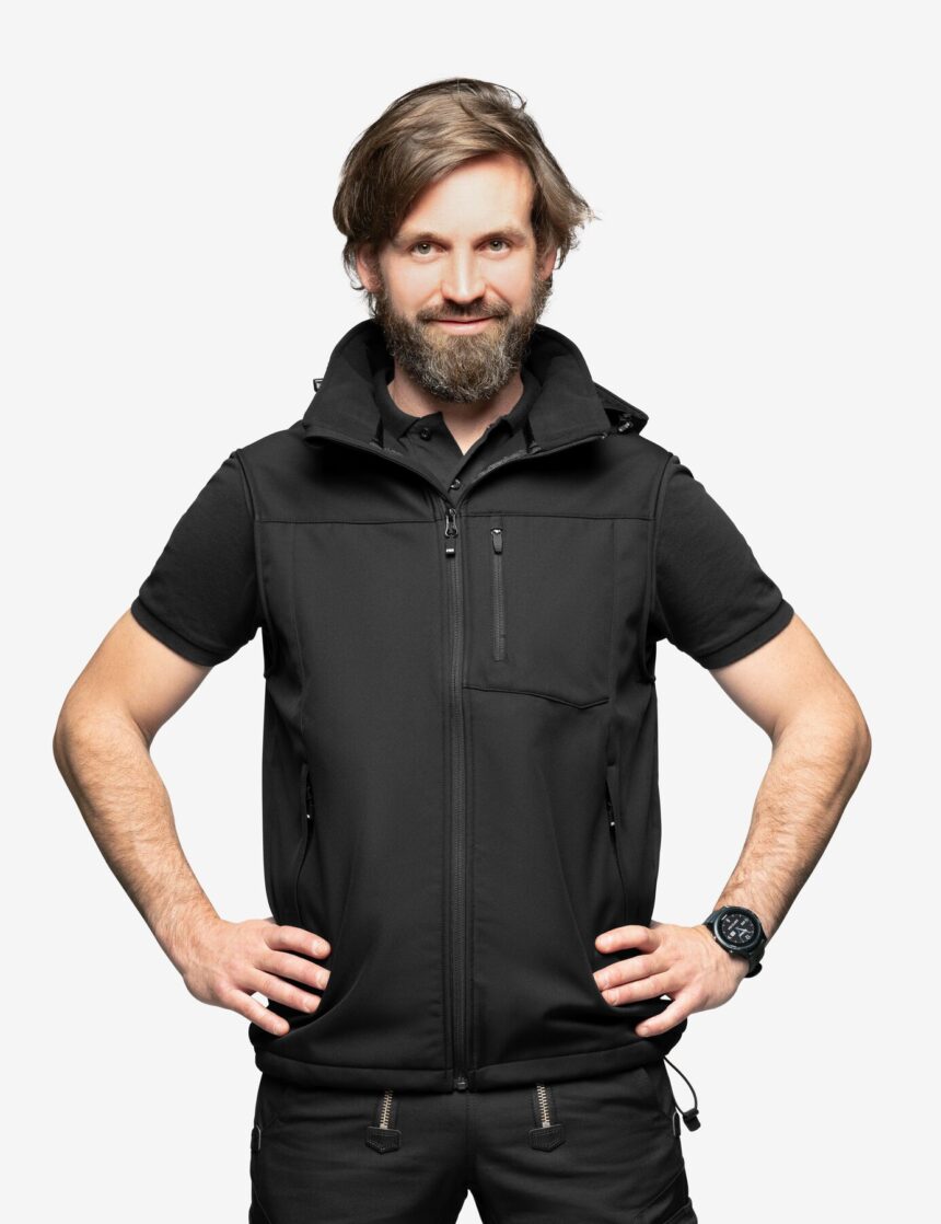 Unsere leichte, atmungsaktive Weste aus hochwertigem Softshell-Funktionsgewebe wärmt deinen Oberkörper und bietet uneingeschränkte Bewegungsfreiheit an den Armen.