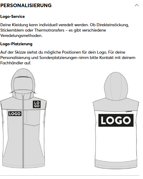 Verlängerter Zipper damit der Reißverschluss auch mit Handschuhen gut zu bedienen ist. Der Zipper ist weich geformt und hat innen Grip.