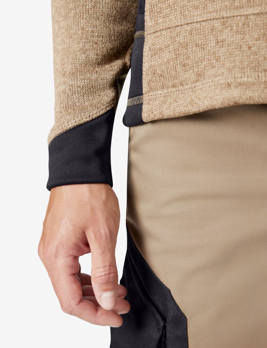 Der Kragen schmiegt sich an den Hals an (ohne zu drücken) und schützt so vor Kälte. Die Kragenhöhe wurde so konzipiert, dass sie beim Arbeiten nicht stört.