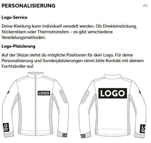 Die Jacke ist bestens geeignet, um dein Logo perfekt zu platzieren: Saubere, große Fläche ohne Naht am Rücken, vorne auch freie Fläche links und rechts an der Brust und vorne keine Innentasche.