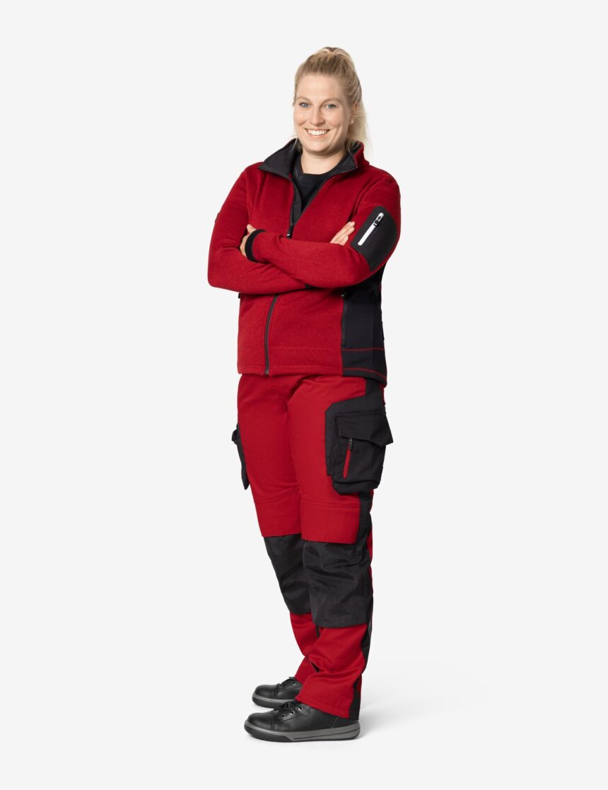 FHB original, Strick-Fleece-Jacke Damen MARIEKE, rot-schwarz