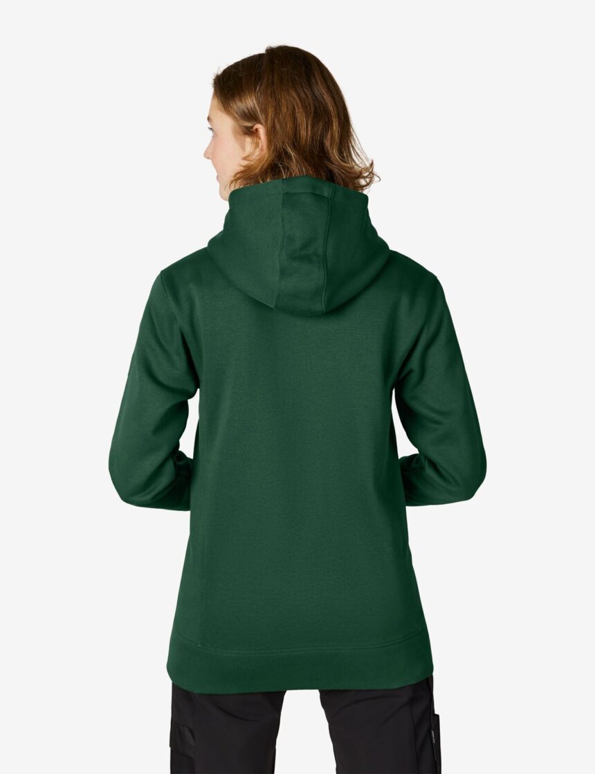 Die Hoodie-Jacke ist nach unten etwas länger geschnitten als normal. Dadurch wird auch bei gebeugter oder kniender Haltung der Rückbereich sauber abgedeckt, was insbesondere an kälteren Tagen sehr angenehm ist.