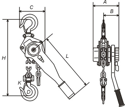 Lastkette: 8x24 mm, Maß A: 176 mm, Maß B: 102 mm, Maß C: 162 mm