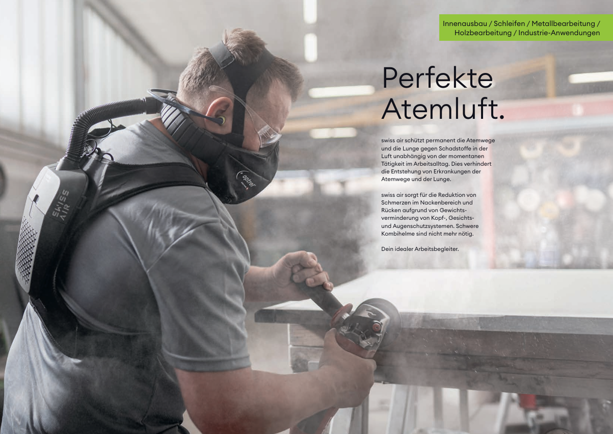 Auf diese Weise befindet sich der Anwender permanent in einem "Überdruck-Luftsystem", welches seine Atemwege permanent gegen verunreinigte Luft schützt
