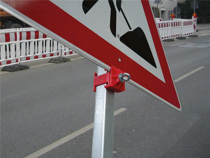 Um Verkehrsschilder auf ein Schilderpfosten / Schaftrohr zu klemmen.